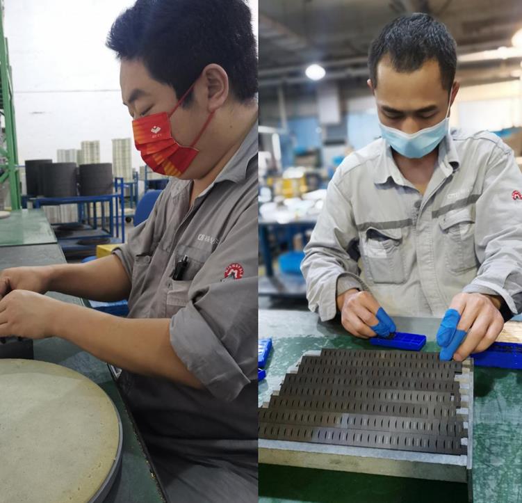 駐廠當日,由于時間緊迫,保證品種的毛坯供應成了當務之急。為發(fā)揮駐廠生產(chǎn)團隊的最大生產(chǎn)效率,盡快完成銷售催急品種的生產(chǎn),在嚴格遵守疫情防控要求的情況下,駐廠生產(chǎn)團隊積極配合,制定生產(chǎn)組織方案,“無死角”做好生產(chǎn)保障工作,確保品種的及時交付。在人員相對緊缺的情況下,駐廠人員為盡快完成催急品種,主動請纓延長上班時間。閉環(huán)生產(chǎn)第一天,刀片一廠碩果累累,壓制工序超額完成11個品種的壓制;燒結工序在人員數(shù)量減半的情況下維持6臺壓力爐和1臺真空爐的正常運行,保障壓制當天壓坯和燒結產(chǎn)品的及時轉(zhuǎn)出。