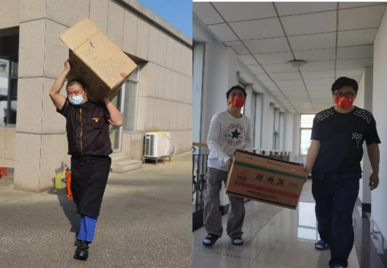 疫情防控下,供應(yīng)商的送貨車輛無法進(jìn)入園區(qū),只能將預(yù)定貨物放至門崗,需食堂工作人員自行推車到門崗提取物資,物資轉(zhuǎn)運(yùn)車緊缺,只能靠人力進(jìn)行搬運(yùn)。有人說,“疫情當(dāng)前,我們也想出一份力,這是工作,也是心意。相信大家團(tuán)結(jié)一致,一定可以打贏這場疫情防控戰(zhàn)?!笔赝嘀?,共克時艱成為了特殊時期大家的共同信念。